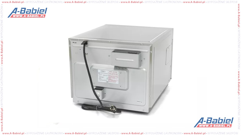 Mikrofalówka ma przejrzysty panel sterowania z cyfrowym zegarem. Rozmiar talerzy, które zmieszczą się tej mikrofalówki to 36 cm lub mniejszej. Oprócz talerzy, mikrofala nadaje się również do (plastikowych) misek GN o średnicy 1/2 GN i mniejszych. Drzwiczki są przezroczyste i bez zamka, można je łatwo otworzyć i zamknąć. Komora wewnętrzna jest oświetlona za pomocą łatwo wymienialnej żarówki (dostęp z boku urządzenia).